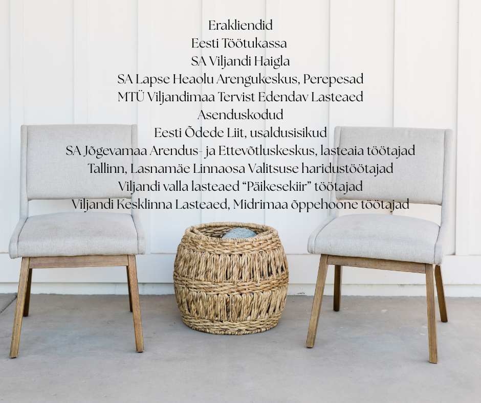 Aastate jooksul oleme teinud hea koostööd suurepäraste organisatsioonidega üle Eesti. Meie teekond on olnud tihe inspireerivatest kohtumistest, arendavatest aruteludest ja tähenduslikest seanssidest. Iga kohtumine on olnud samm tugevama, teadlikuma ja toetavama töökeskkonna suunas.